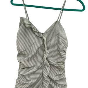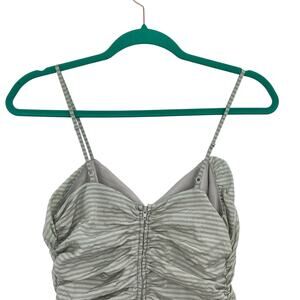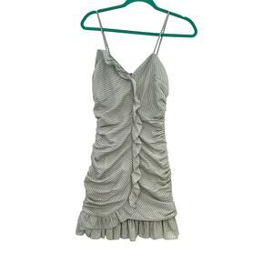 Betsey Johnson Vintage Dress Mini Ruched Ruffle Striped Green Gray Size 0
