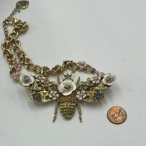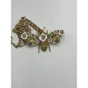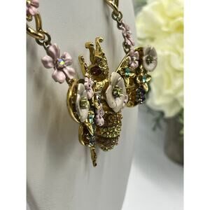 Betsey Johnson Vintage Enchanted Floral Garden Beetle Queen Bee Moth Necklace