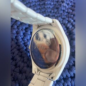 Betsey Johnson Vtg BJ00048-04 White Crystal Accent Bezel Watch-Needs New Battery