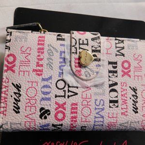 Betsey Johnson Wallet Card Case Peggable with Key Ring Peace Love Smile