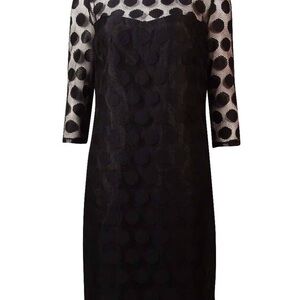 Betsey Johnson Whimsigoth Sheer Neck 3/4 Sleeve Polka Dot Overlay Black Sheath 6