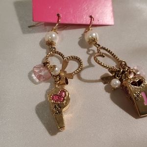 Betsey Johnson Whistle Earrings. Heart & whistle detail with pearl & bow details.