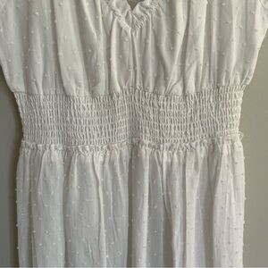 Betsey Johnson White Maxi Dress SZ M Swiss Dot Smocked Waist Boho Ruffle Cottage