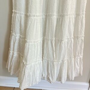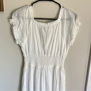 Betsey Johnson White Maxi Dress SZ M Swiss Dot Smocked Waist Boho Ruffle Cottage