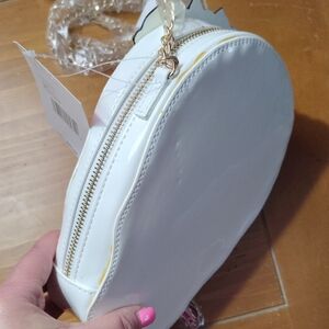 Betsey Johnson White Skull Crossbody Bag with Pink and Yellow Accents