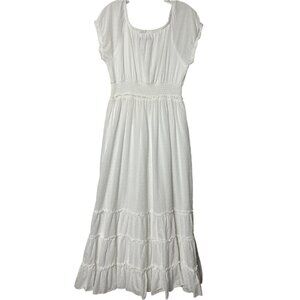 Betsey Johnson White Swiss Dot Maxi Dress Large 100% Cotton Women's Romantic Style Ruffle Sleeves & Tiered Skirt