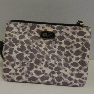 Betsey Johnson Woman Small Gray Tan White Top Zip Shoulder Bag Purse