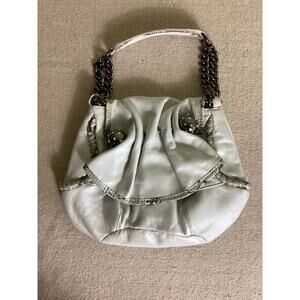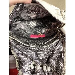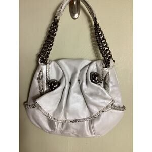 Betsey Johnson Women Handbag Cream EUC Hobo Gunmetal top Bauble detail