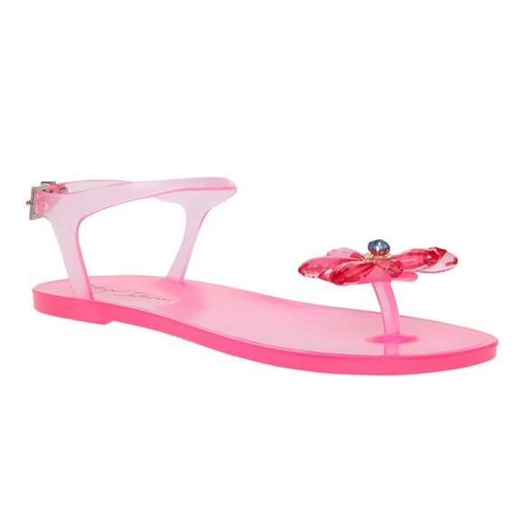 Betsey Johnson Women Pink Clear Jelly Flower Tabby Summer Flat Sandals Size US 7