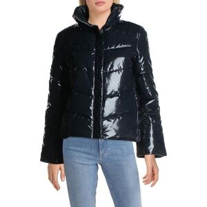 Betsey Johnson Womens Betsey's Best Quilted Glitter Puffer Jacket navy