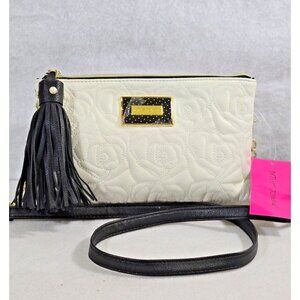 Betsey Johnson Women's Blush Bone Double Zip Bag Tasseled Quilted Floral NEW