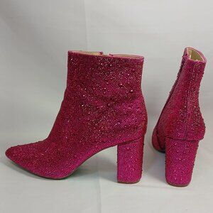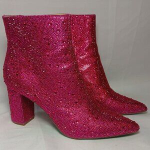 Betsey Johnson Women's SB-Cady Fashion Ankle Boots in Fuchsia 9.5 M US Zip Bling Heel
