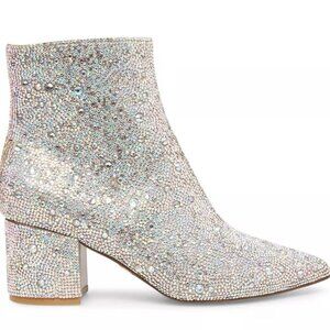 Step into style and sparkle with the Betsey Johnson Cady Rhinestone Booties in size 5. These fashion-forward booties feature high stiletto heels and dazzling rhinestone accents, perfect for parties, evening events, or special occasions. The slip-on design ensures easy wear while providing a comfortable, chic fit for all-day confidence.