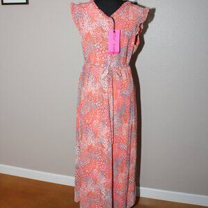 Betsey Johnson Womens Dreamscape Print Flutter Sleeve Maxi Dress Coral Size L