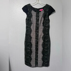 Betsey Johnson Women's Dress Size 8 Black & Silver/Gray w/Lace Wedding Cocktail