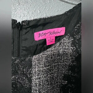 Betsey Johnson Women's Dress Size 8 Black & Silver/Gray w/Lace Wedding Cocktail. EUC. Measurement from shoulder to hem 39”. Armpit to armpit laying flat 18”. Waist laying flat 16”. Hips laying flat 20”. Zip and hook closure on back.