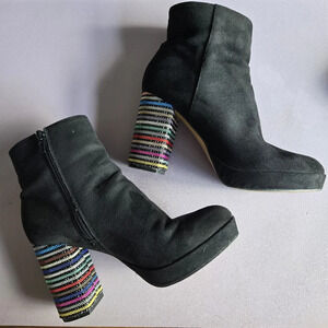 Betsey Johnson Women's Embellished Heel Ankle Booties Downie 6.5 Suede Black