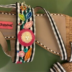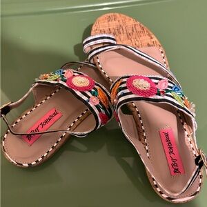 Betsey Johnson Women's Embroidered Sandals - Black and Floral