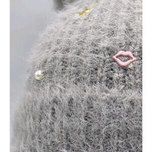 Betsey Johnson Women's Fuzzy Beanie Hat w/ Charm Embellishments NWT