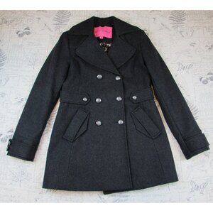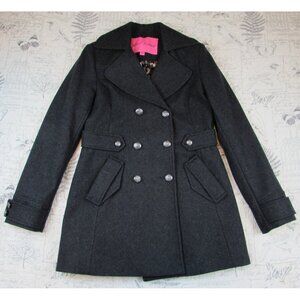 Betsey Johnson Womens Gray recycled wool double breasted leopared lined coat 6
