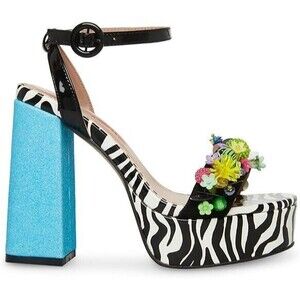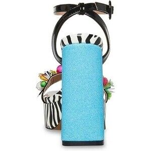 Betsey Johnson Jorden platform heels features a colorful assortment of beads and embellishment on the front strap along with a glittery finish heel and an ankle strap.