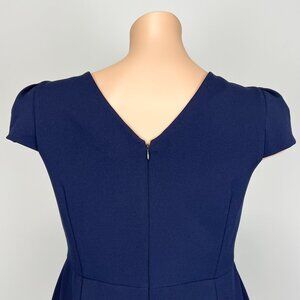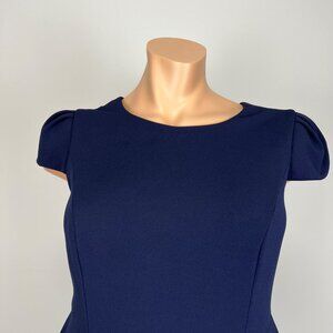 Betsey Johnson blue stretchy crepe ruffle hem cap sleeve dress