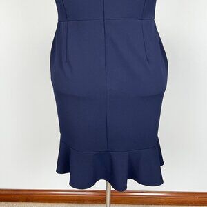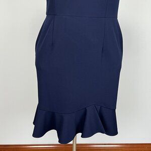 Betsey Johnson Womens Plus Stretch Crepe Dress Navy Blue Ruffle Hem size 14W