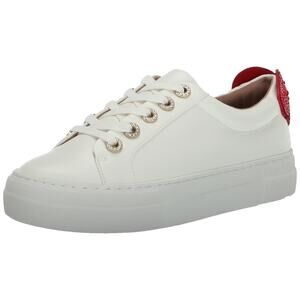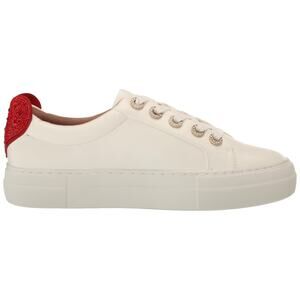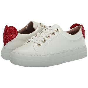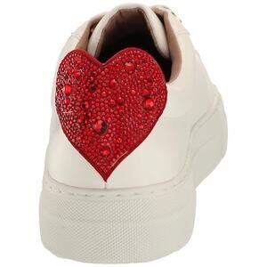 The PRESLEY white PU sneaker features a red rhinestone heart on the back counter and rhinestone eyelets.