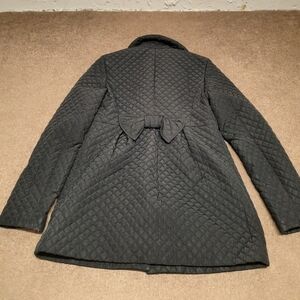 Betsey Johnson Womens Quilted Jacket Black Back Bow Pink Camo Lining Small