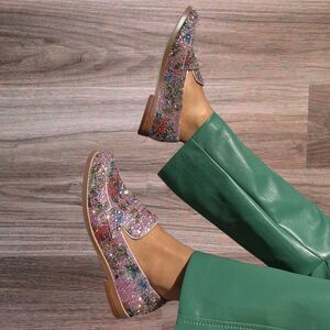 Add a touch of sparkle to your step with these Betsey Johnson SB-ARON Rhinestone Floral Penny Loafers in size 7. Featuring a dazzling rhinestone-embellished upper with a chic floral design, these loafers blend bold style with everyday comfort. The slip-on design ensures easy wear, making them perfect for casual outings or adding flair to dressy looks. Lightly worn with minimal signs of use—an eye-catching statement piece for any wardrobe!