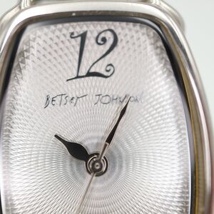 Betsey Johnson Womens Silver Tone Watch 20mm Oval Dial Leather Strap New Battery