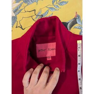 Betsey Johnson Women’s Small Red Wool Blend Full Zip Jacket Coat Geo pockets