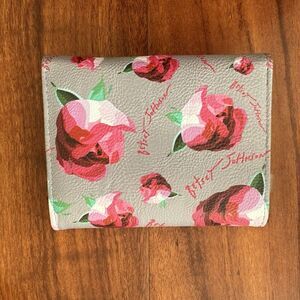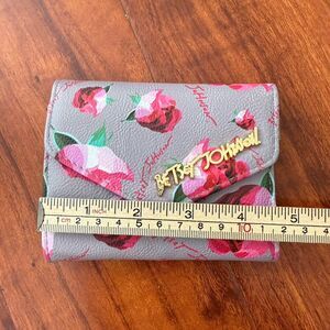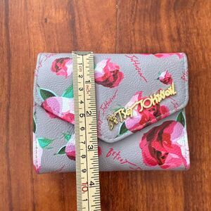 Betsey Johnson Womens Wallet Pink Gray Rose Floral Snap Closure Logo 4.5x3.5