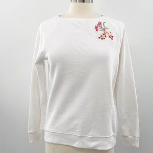 Betsey Johnson Womens White Embroidered Sweatshirt Size Medium M