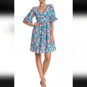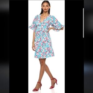 Betsey Johnson Women's floral printes Boho ruffled Bell Sleeve Dress Size 6 nwt