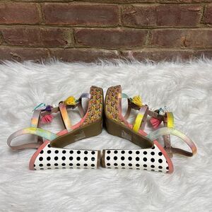 Betsey Johnson Women’s Marcyy Multi Color Tassel & Shell Block Heel Size 7.5