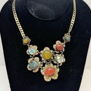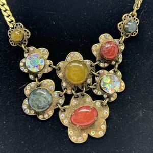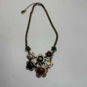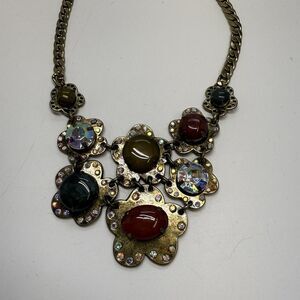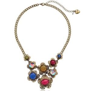 Betsey Johnson Woodland Antique Gold Tone Metal Multi Colored Stone Bob Necklace