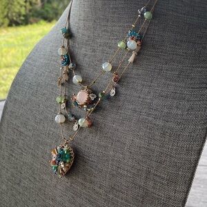 Woven Mixed Multi Strands Colored Bead Flower Heart Illusion Necklace