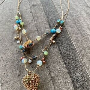 Betsey Johnson Woven Mixed Multi Strands Colored Bead Flower Heart Necklace