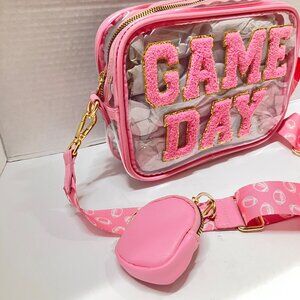 Betsey Johnson XOCHEER Kitsch Football Clear Stadium Bag Web Strap & Coinpurse