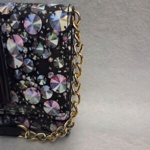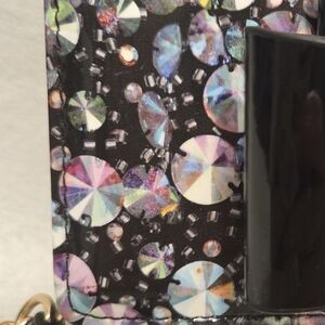 Betsey Johnson XOLYLA Crossbody Patent Finish Black Bow Multi Color Disco EUC