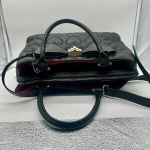 Betsey Johnson XOXO Quilted Heart Handbag Tote Black Bow Crossbody Vegan Leather