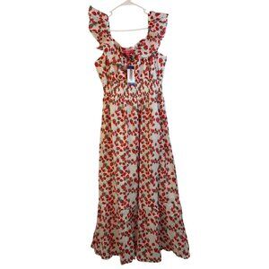 Betsey Johnson XXL Strawberry Print Ruffle Maxi Dress Stretch Smock RR10495