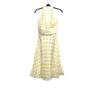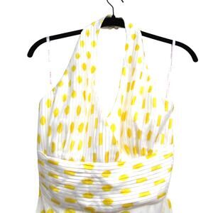 Betsey Johnson Y2K Yellow Polka Dots Pleated Halter Backless Dress Size 10 NEW