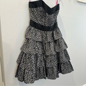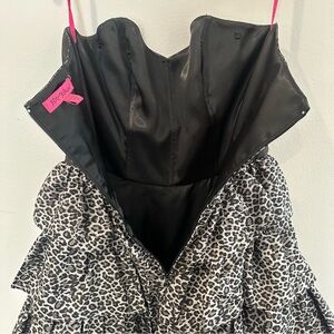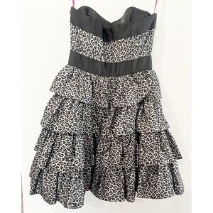 Betsey Johnson Y2k Black Leopard Silk Sweetheart Mini Dress