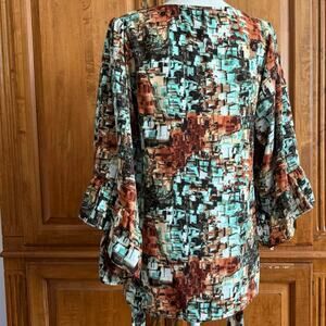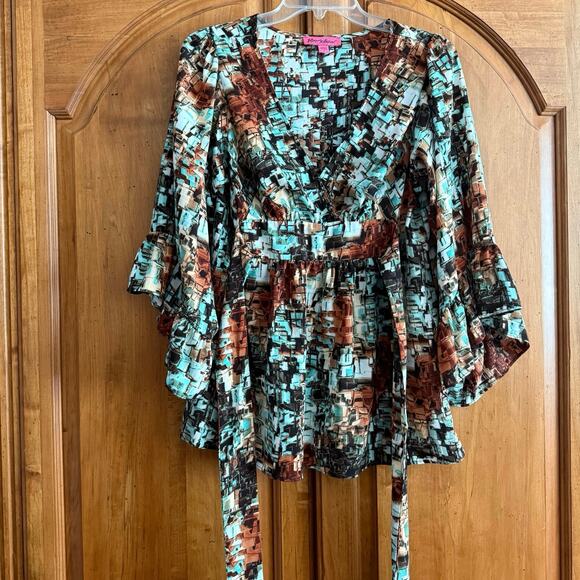 Betsey Johnson abstract print blouse bell sleeve top boho S small
