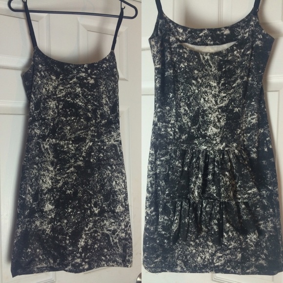 This dress is so cute! Fitted with ruffle on the back. Size small and fits up to a 6 - I'm a 6 and it fits me perfectly. Only wore once - in perfect condition.