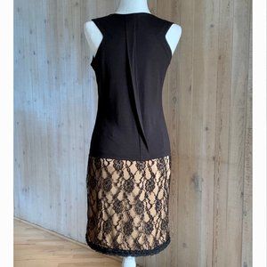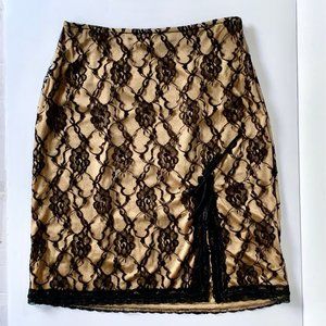 Betsey Johnson black lace over cream w/slit and bow midi skirt - size M