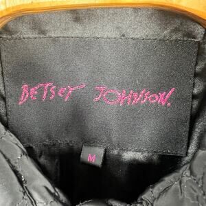 Details: Betsey Johnson black quilted coat jacket heart button snap closure size M