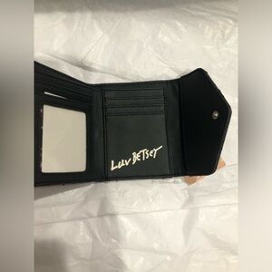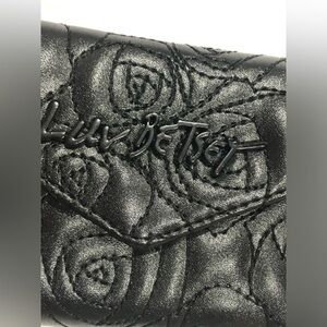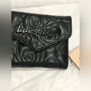 Betsey Johnson black rose quilted foldover Luv Betsey monogram wallet new